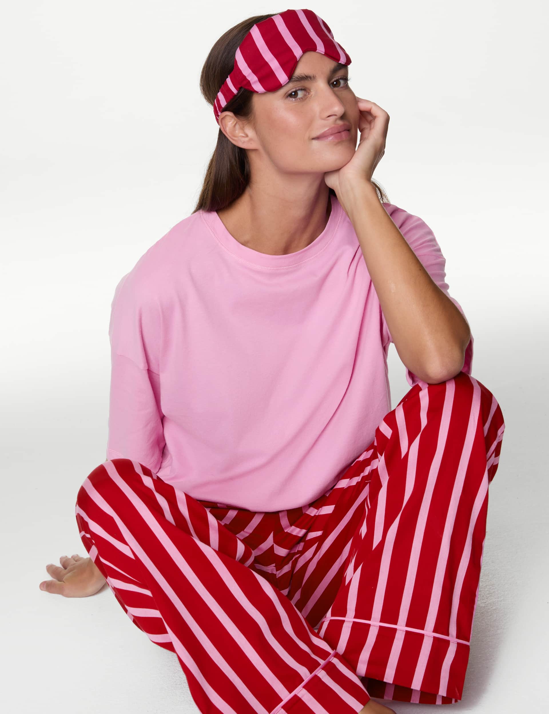 M&S Collection Women's Candy Striped Family Christmas Pyjama Set with Eye Mask - 10 - Pink Mix, Pink Mix