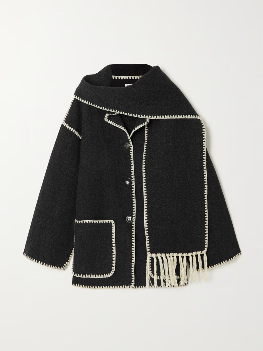 Toteme draped fringed wool-blend jacket