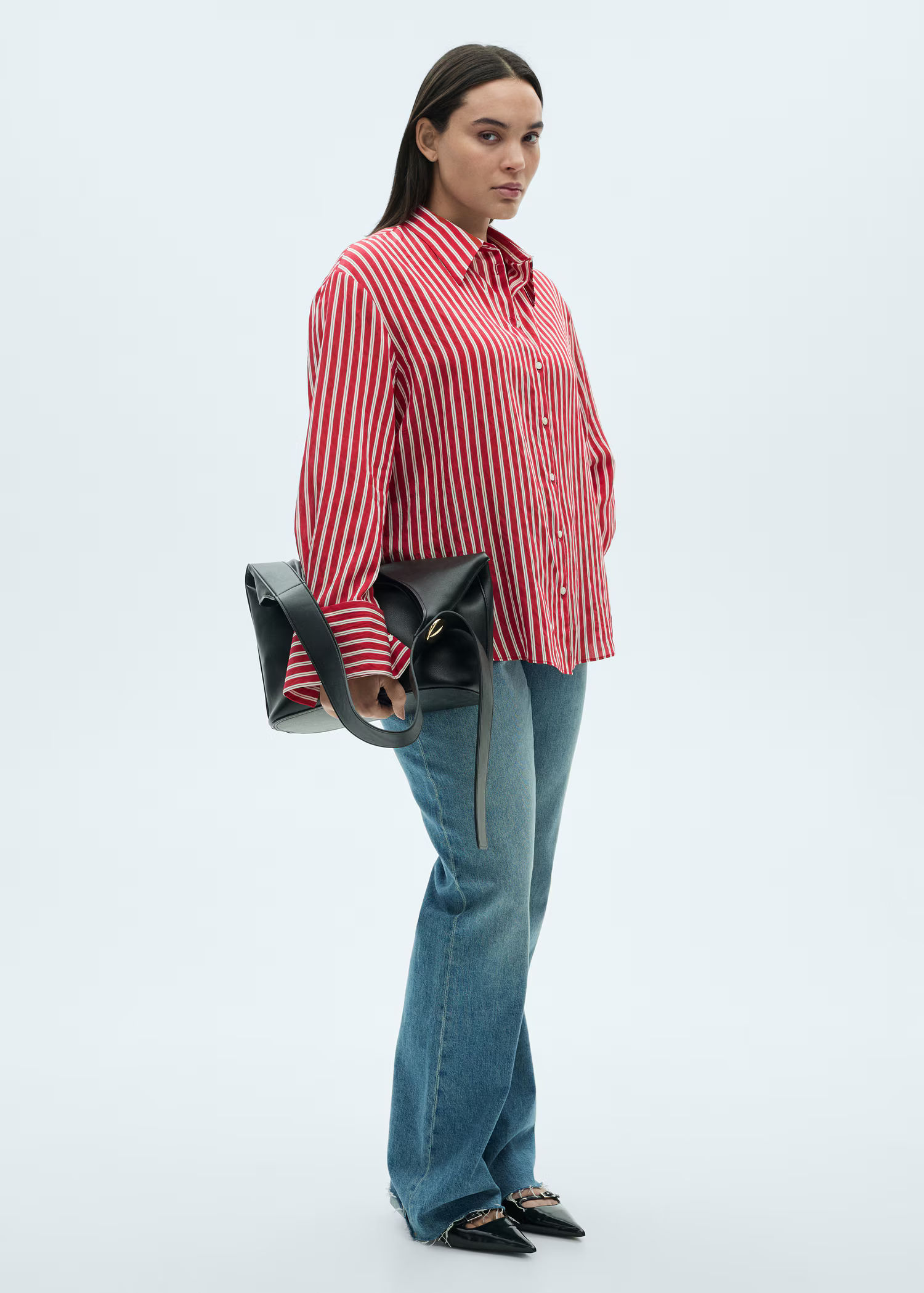 Size up for an oversized fit that looks great worn loose over a white midi skirt.