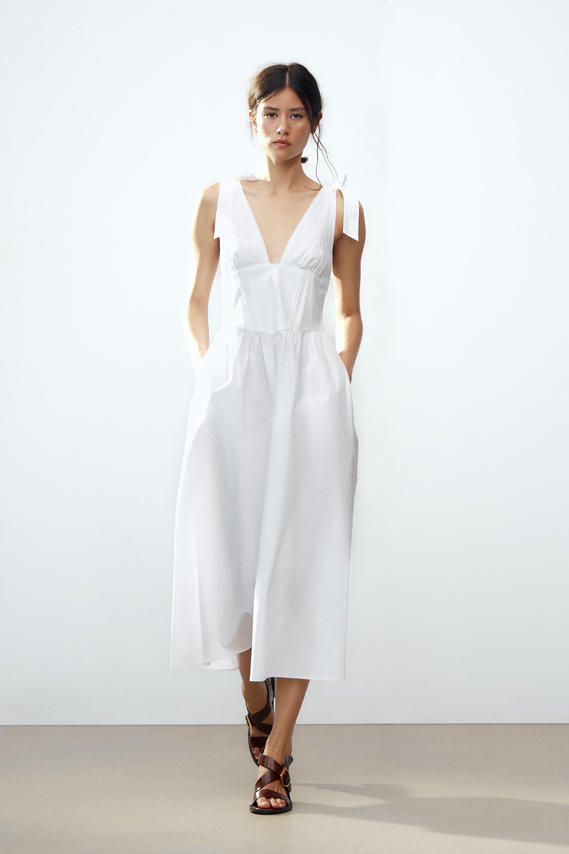 Poplin Midi Dress With Ties