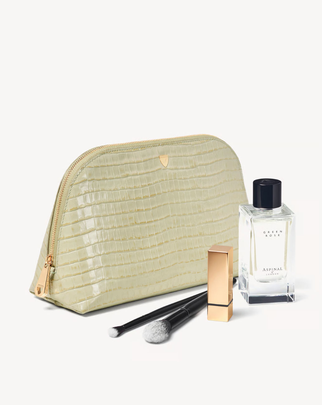 Aspinal of London Classic Toiletry Bag in Deep Shine Pistachio Small Croc