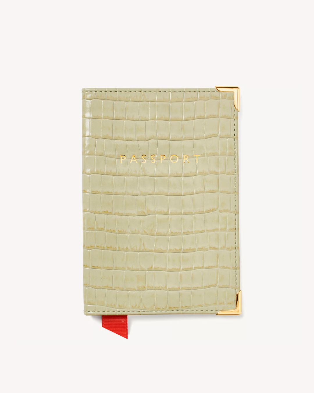 Aspinal of London Passport Cover in Deep Shine Pistachio Small Croc