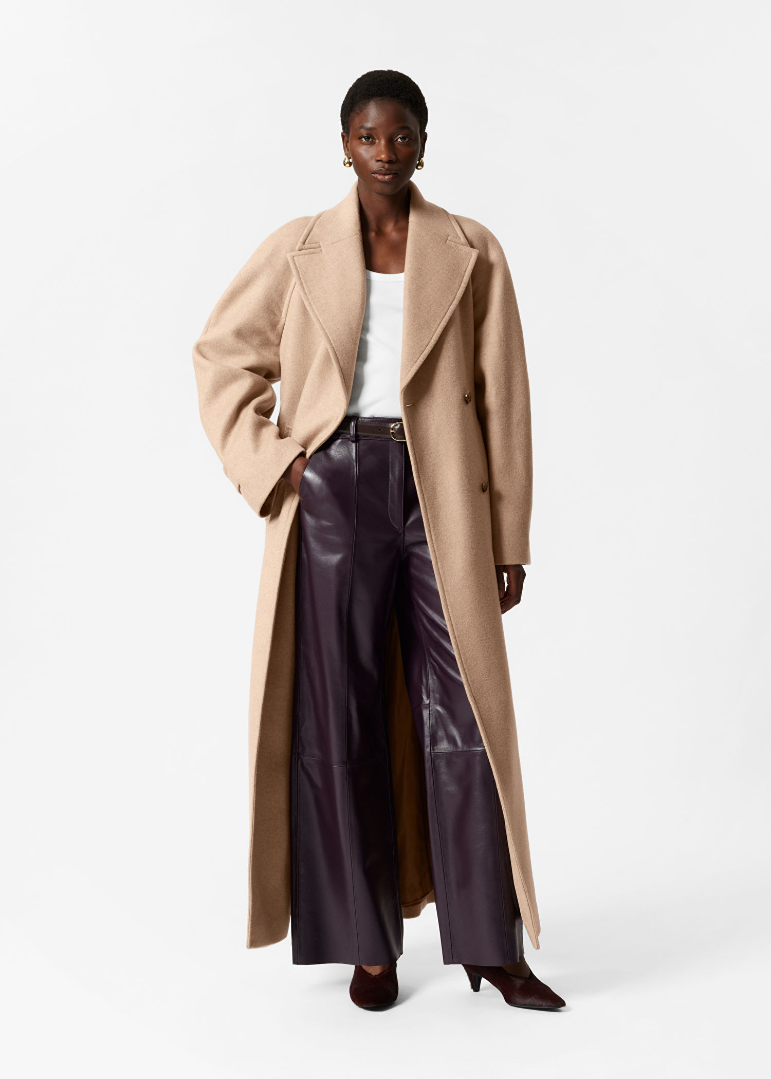 You can spot the quality of this wool-blend coat a mile off. Tactile, cocooning and versatile in camel, this tailored look is a keeper.
