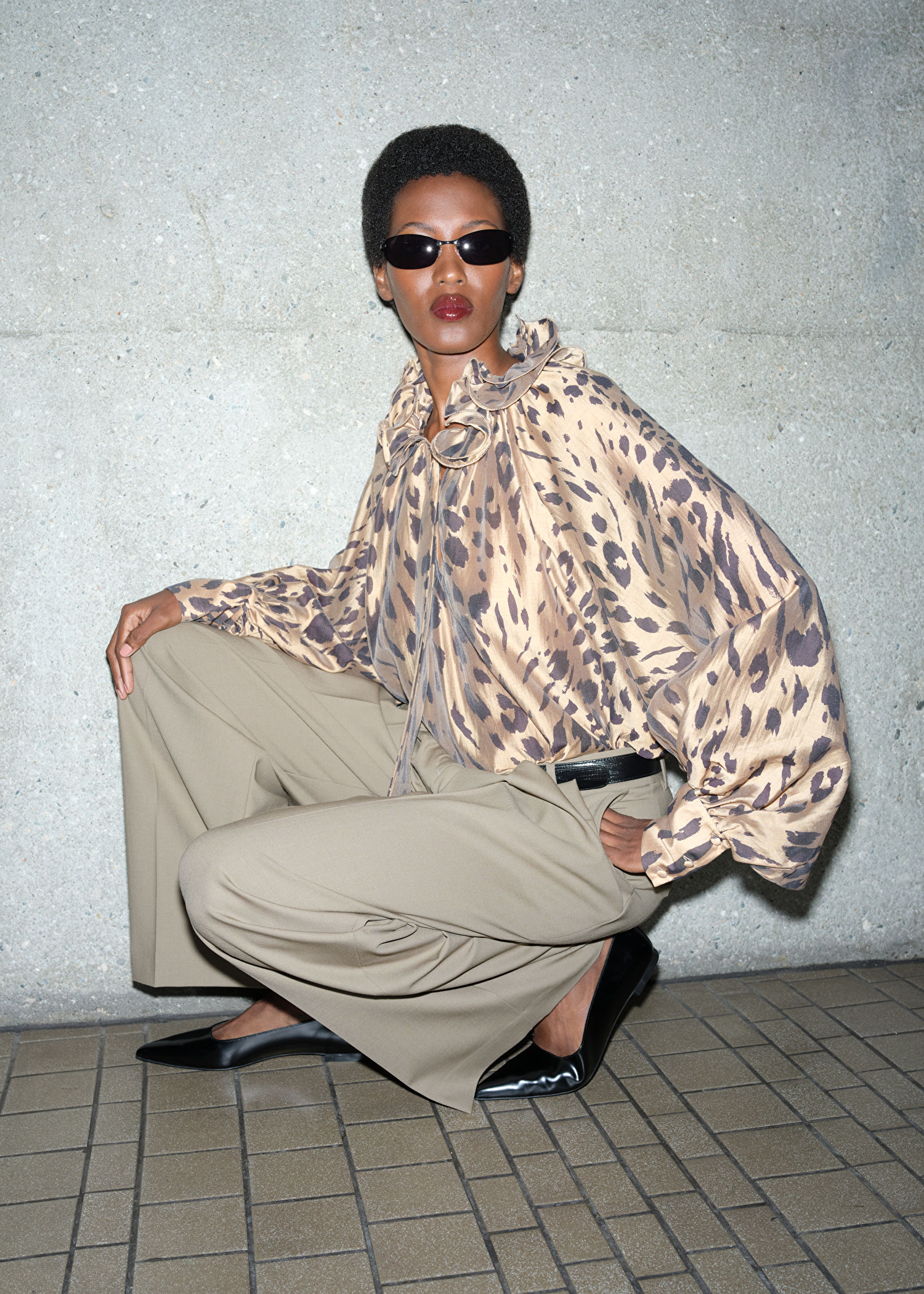 It's said that animal print is a neutral, but this blouse isn't meant to blend in. I'm loving the concept of this flamboyant 80's ruffle top with a sleek tailored trouser.