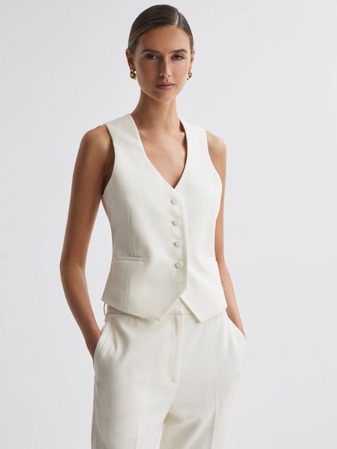 This waistcoat has such a beautiful fit - something you can rely on every time with Reiss. Style over wide legs now - be that jeans or tailoring - and some matching white shorts when the sun shines.