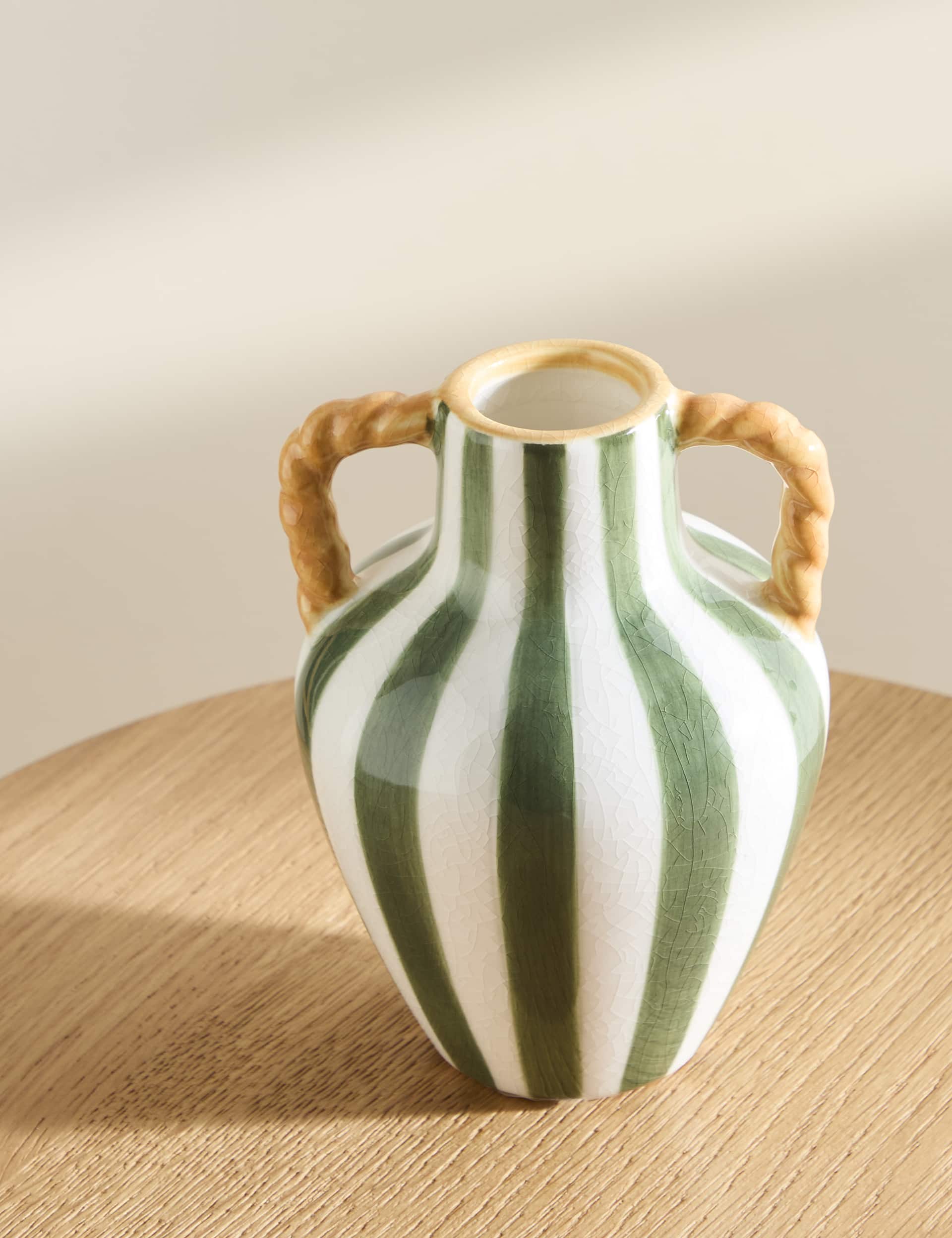M&S Small Striped Ceramic Vase Green Mix