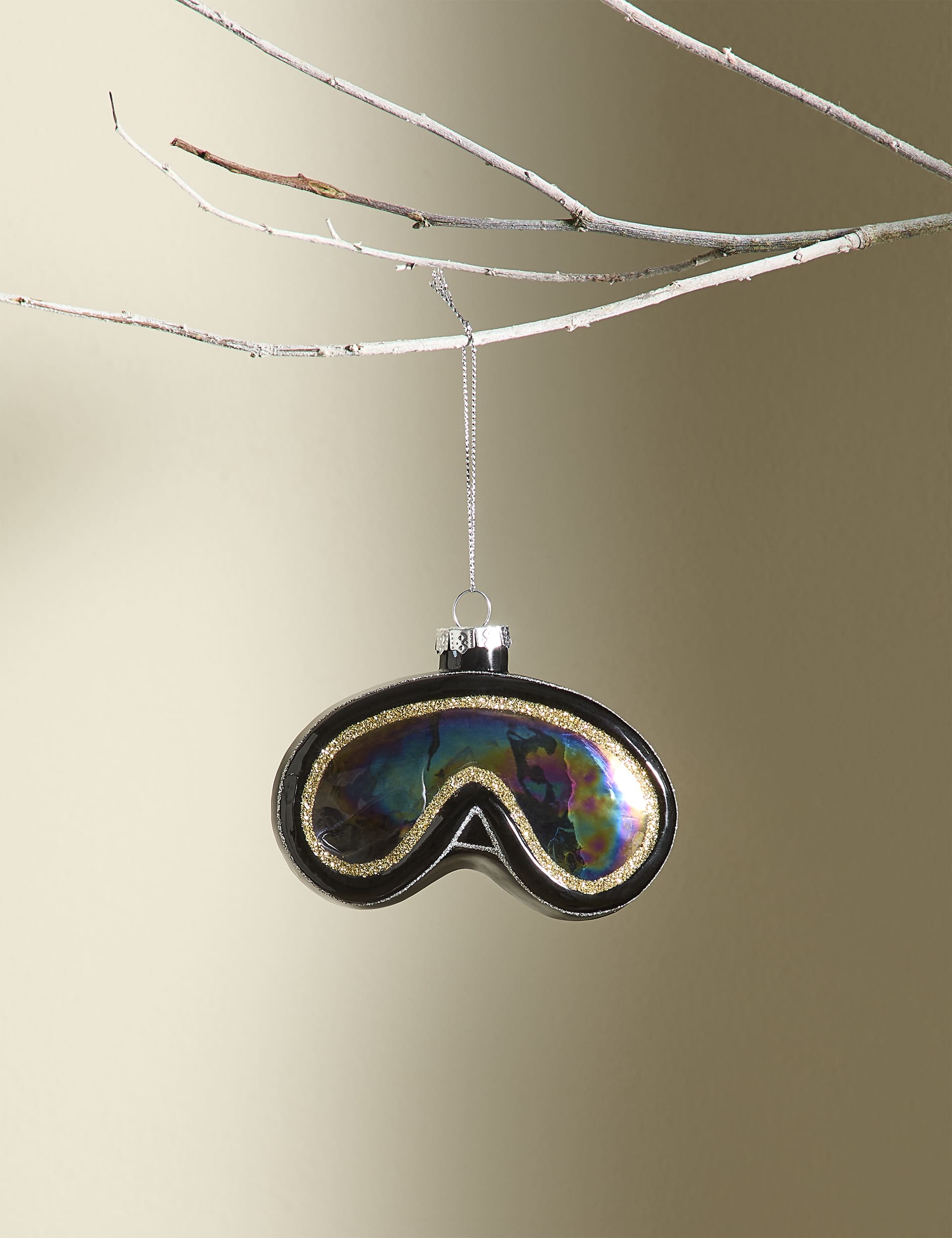 M&S Black Glass Hanging Ski Mask Decoration