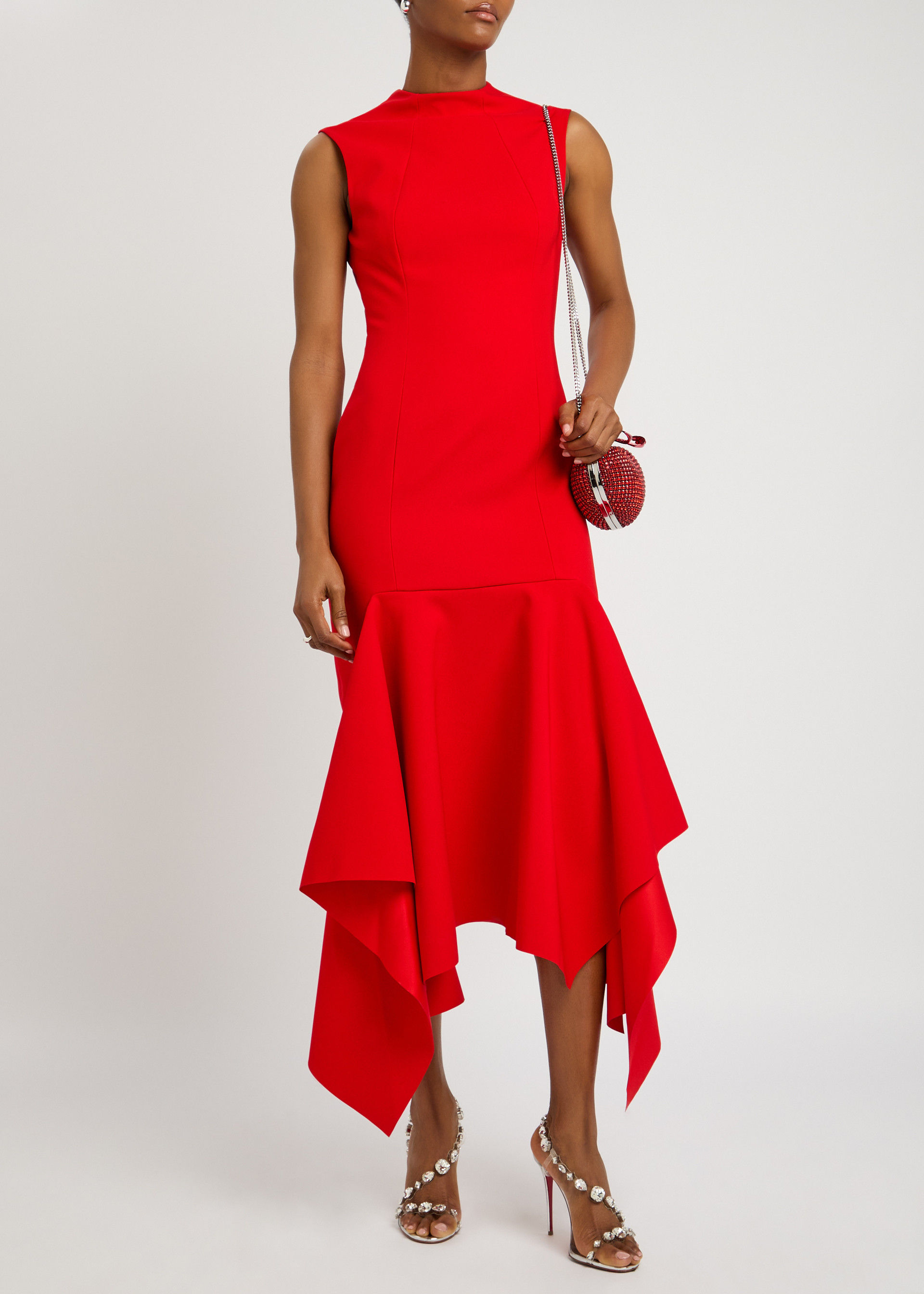 This showstopper is a masterclass in modern minimalism - the vibrant cherry hue is bold yet refined, making it perfect for a chic city wedding. With its architectural hemline and clean silhouette, it gives confident, fashion-editor energy without trying too hard. Trust us, this is one you'll wear again and again - and not just throughout the summer either. Switch to black accessories in winter for all year round appeal.