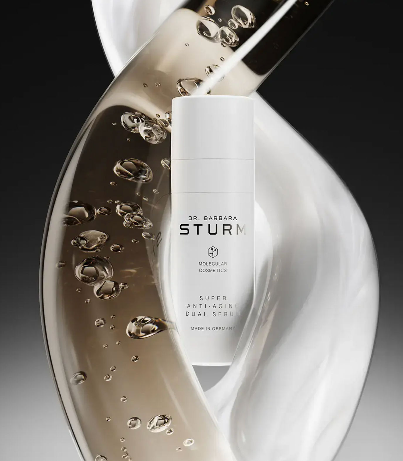Now, Dr. Sturm has released what might be her most luxurious product to date: the Super Anti-Aging Dual Serum. Let me break it down. This two-phase serum is designed for visible age reversal and long-term skin health, and it's truly unlike anything I’ve used before. Inspired by the skin’s lipid-rich properties (key for its structure and function), it combines powerful antioxidants, hydration-boosting ingredients, and skin-identical ceramides, fatty acids, and peptides. Phase one, the brand's best-selling hyaluronic acid-based serum, which works to deliver deep hydration, protect against oxidative stress, and help delay skin cell aging. Phase two is a lipidic, oil-soluble serum that repairs the skin barrier and boosts collagen and elastin production. Together, they combine for skin that looks visibly firmer, smoother, and fresher, with reduced fine lines and wrinkles – confirmed by 95% of those who trialled it.