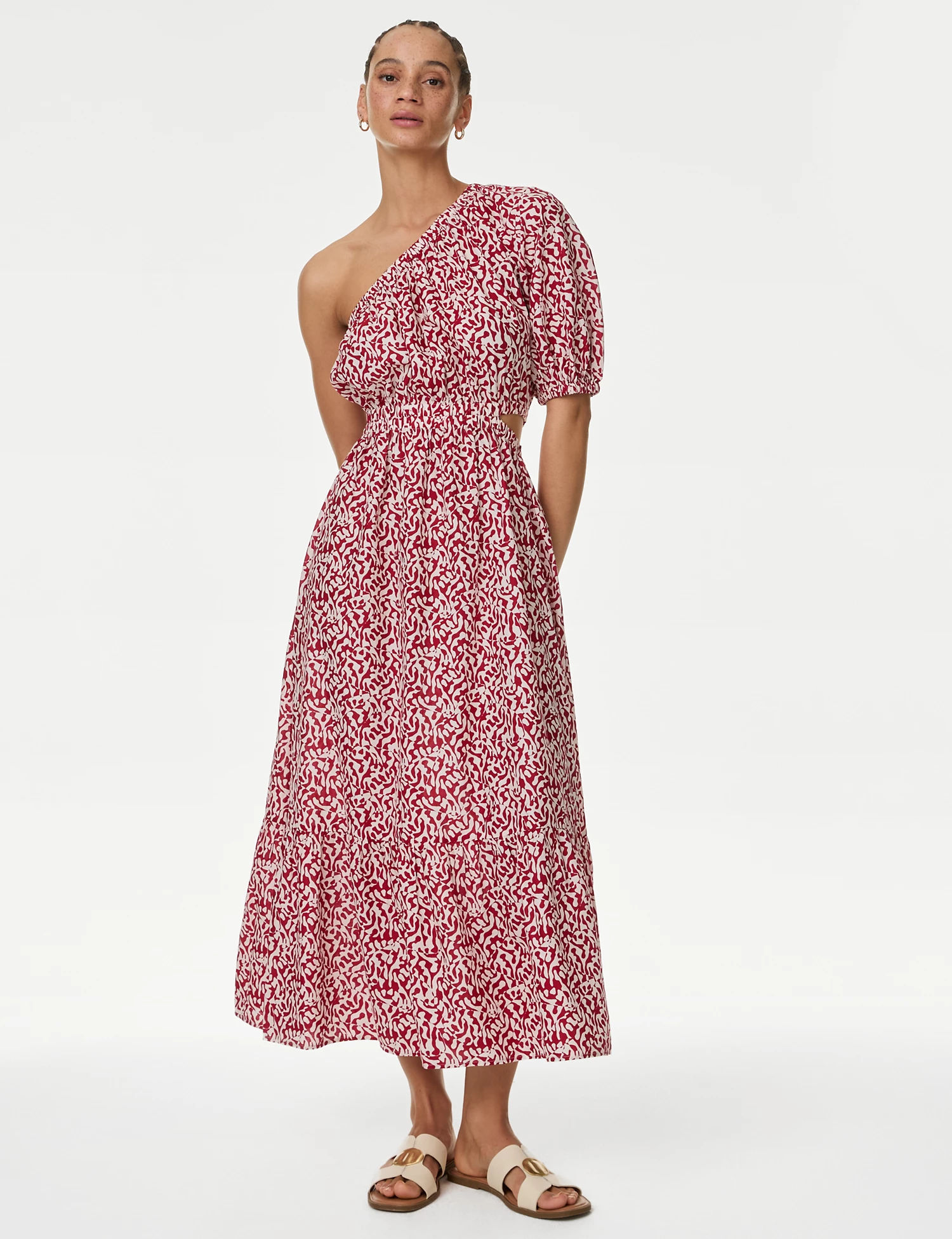 Pure Cotton Printed One Shoulder Beach Dress