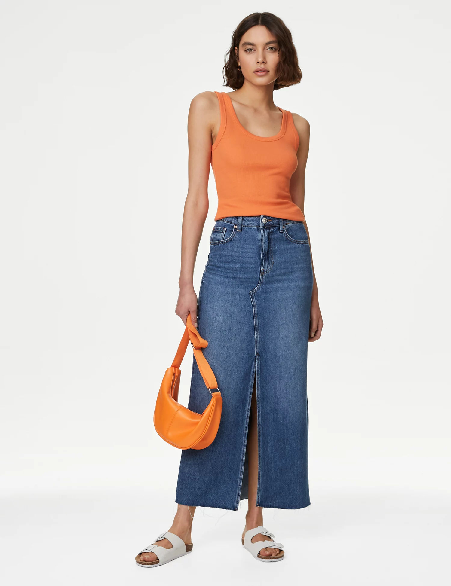 These tops are simply perfect: a great scoop neck, expensive looking ribbed finish, flattering fit, and plenty of colours to choose from. Make them the base of your best summer outfits (starting with the vibrant tangerine).