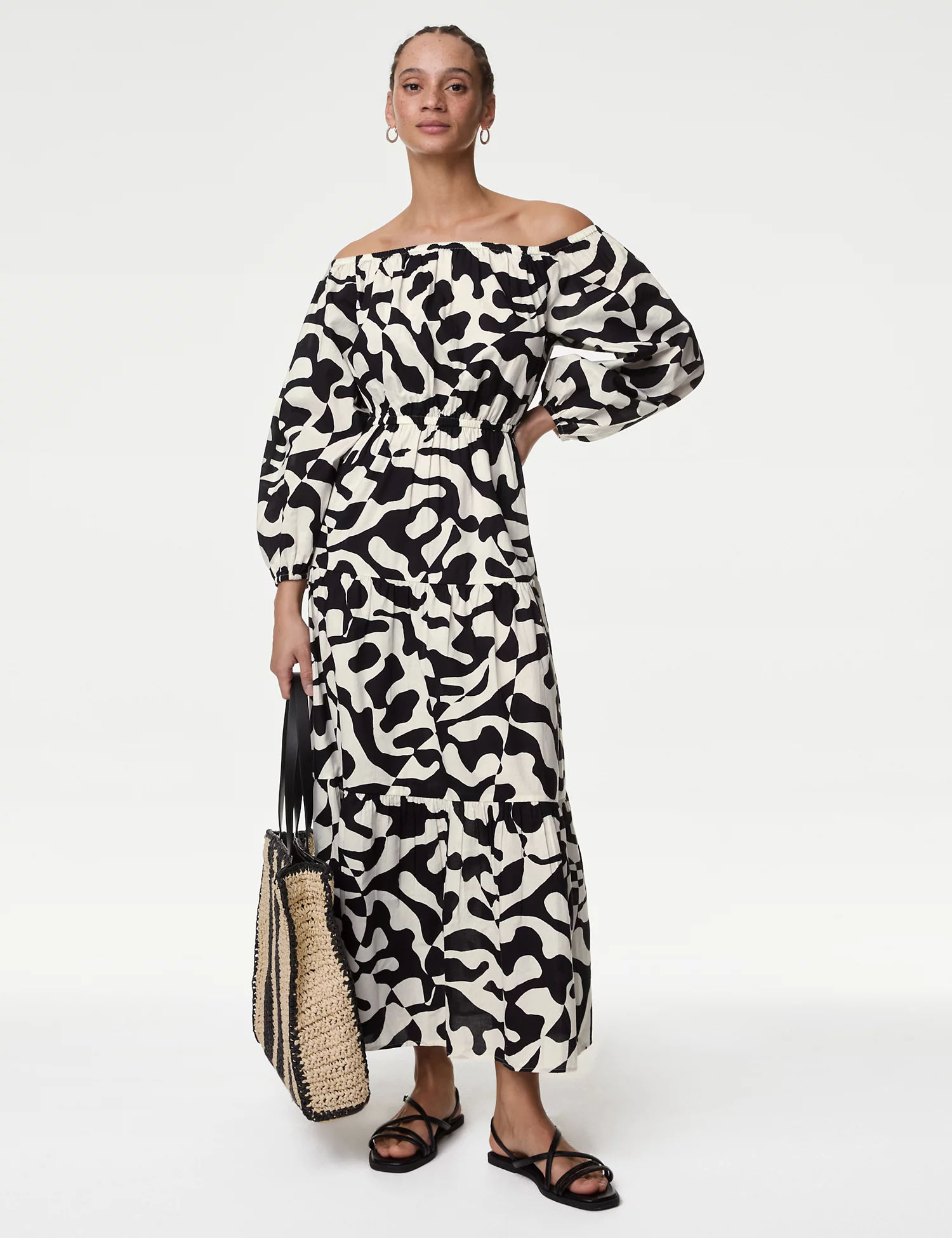 Pure Cotton Printed Bardot Midaxi Beach Dress