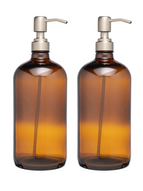 &Again Amber Glass Pump Bottle 1000Ml Set of 2