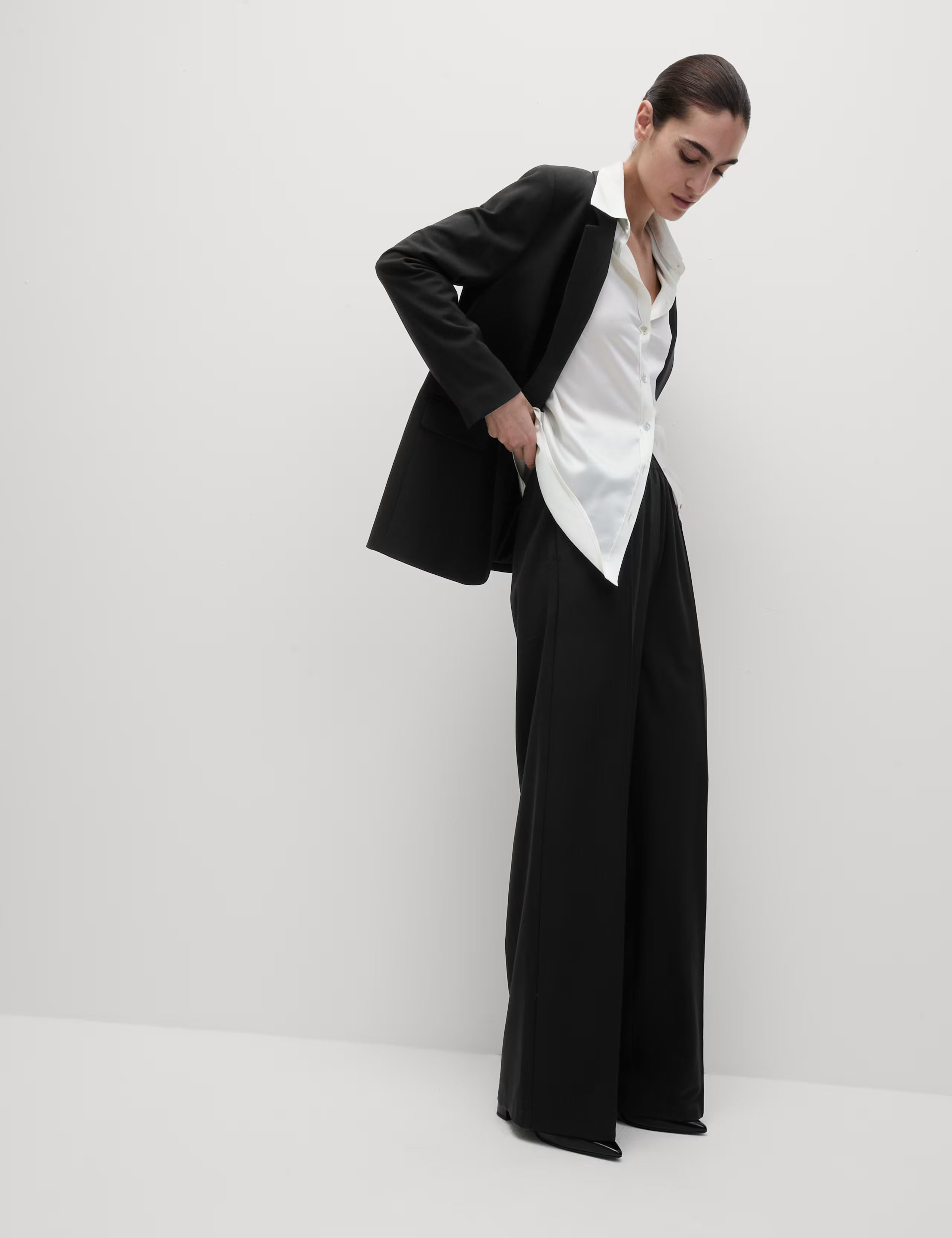 If you're in the market for a perfectly cut black trouser, this wide leg style is it. Perfect for styling with oversized shirts or slouchy, luxe jumpers.