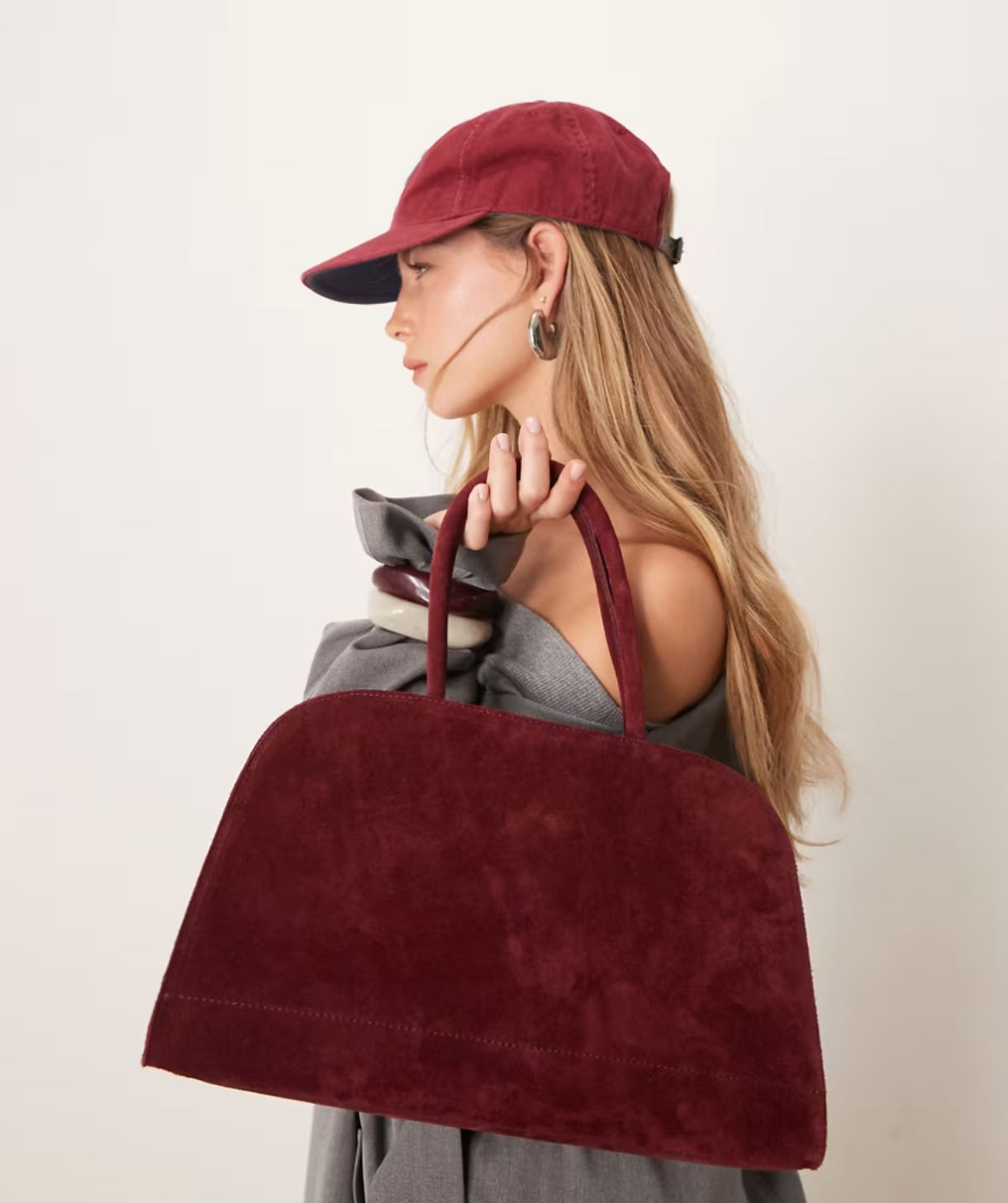 ASOS DESIGN suede bowler tote bag in burgundy