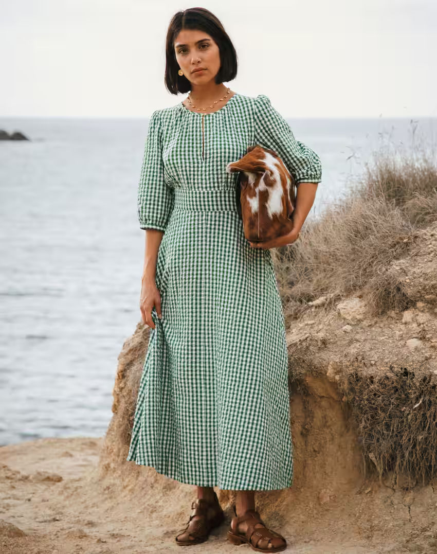 This cotton seersucker dress is destined to win you over with its nettle-green gingham pattern. Sure, it's not quite warm enough for it to sing on its own yet, but its laidback look goes perfectly with a slouchy cardigan or Brora's seasonal standout linen jacket.