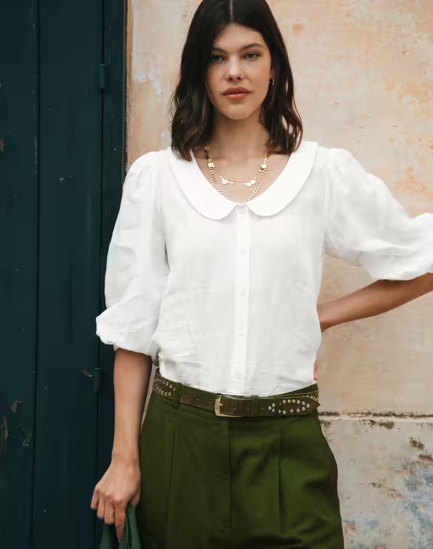 Washed Linen Peter Pan Blouse