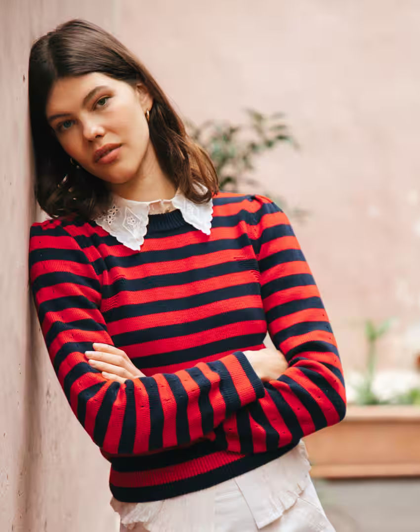 A stripe jumper will never fall out of your rotation, but you'll find yourself reaching for this one on repeat thanks to its uplifting pop of cherry red. Layered with a pretty collar underneath, and you're onto a winning formula for spring - just add denim.