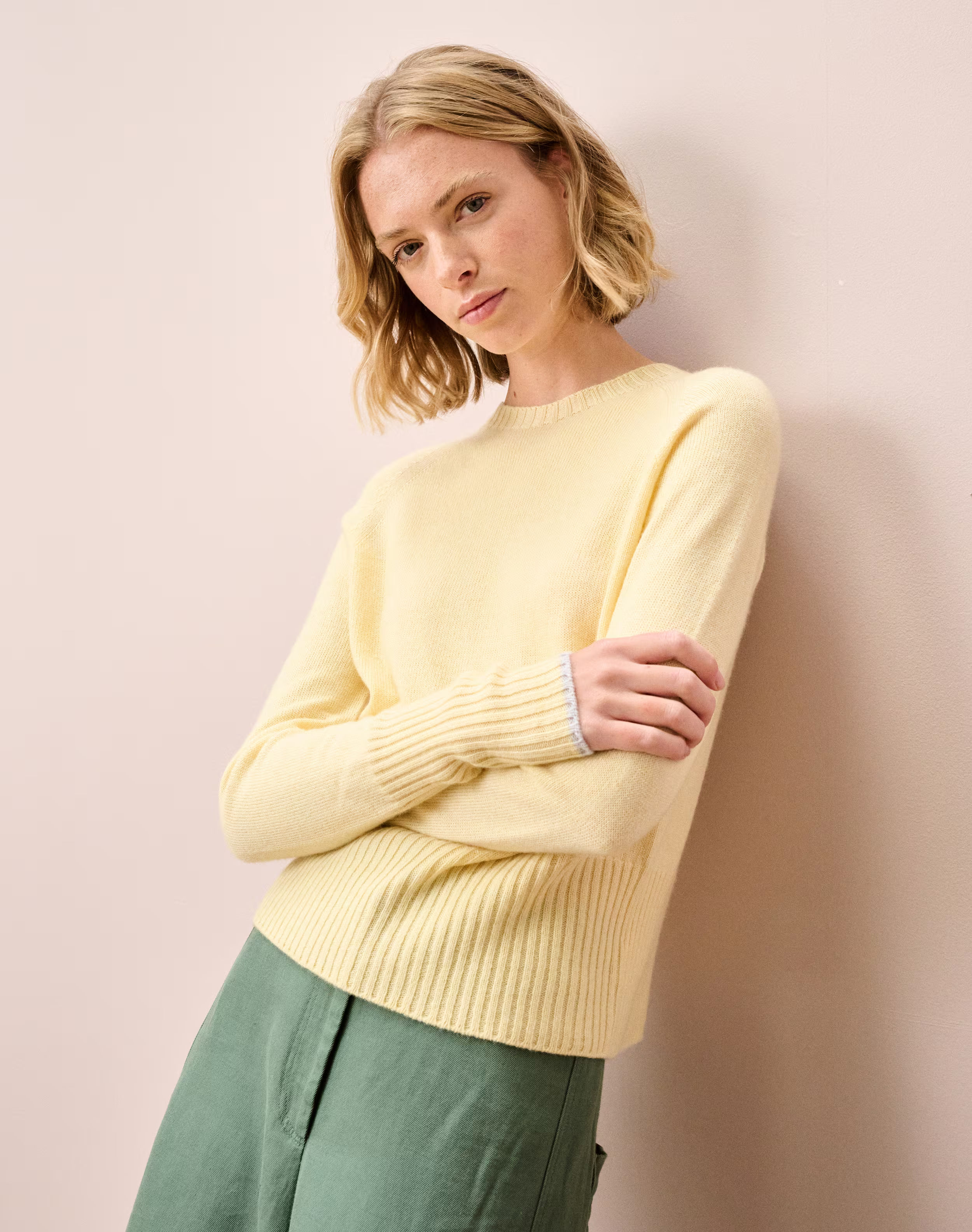 Repeat after us: stop. saving. cashmere. for. Christmas. Sustainably knitted in Scotland, this super-flattering cashmere wonder is perfect for now in this buttery yellow tone.