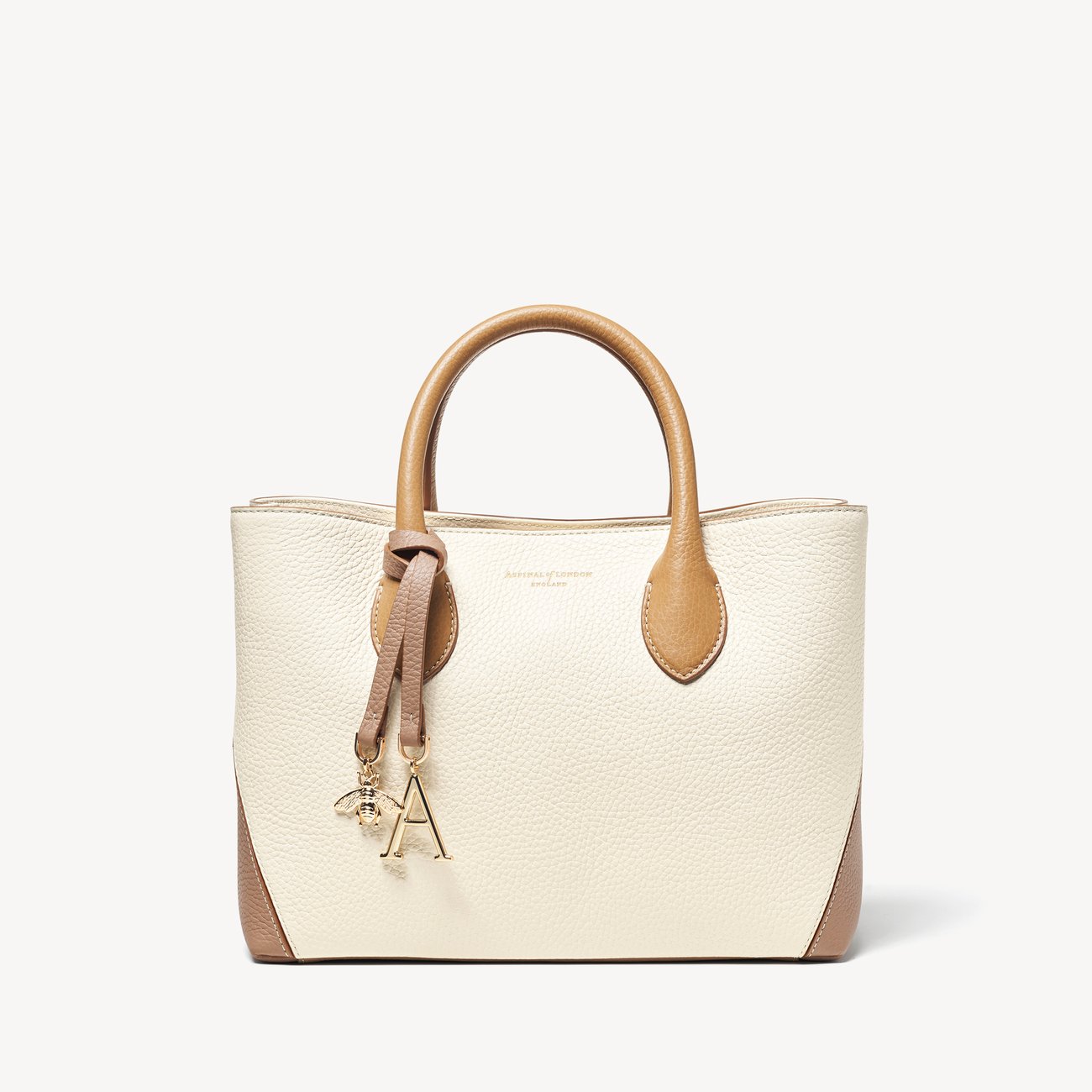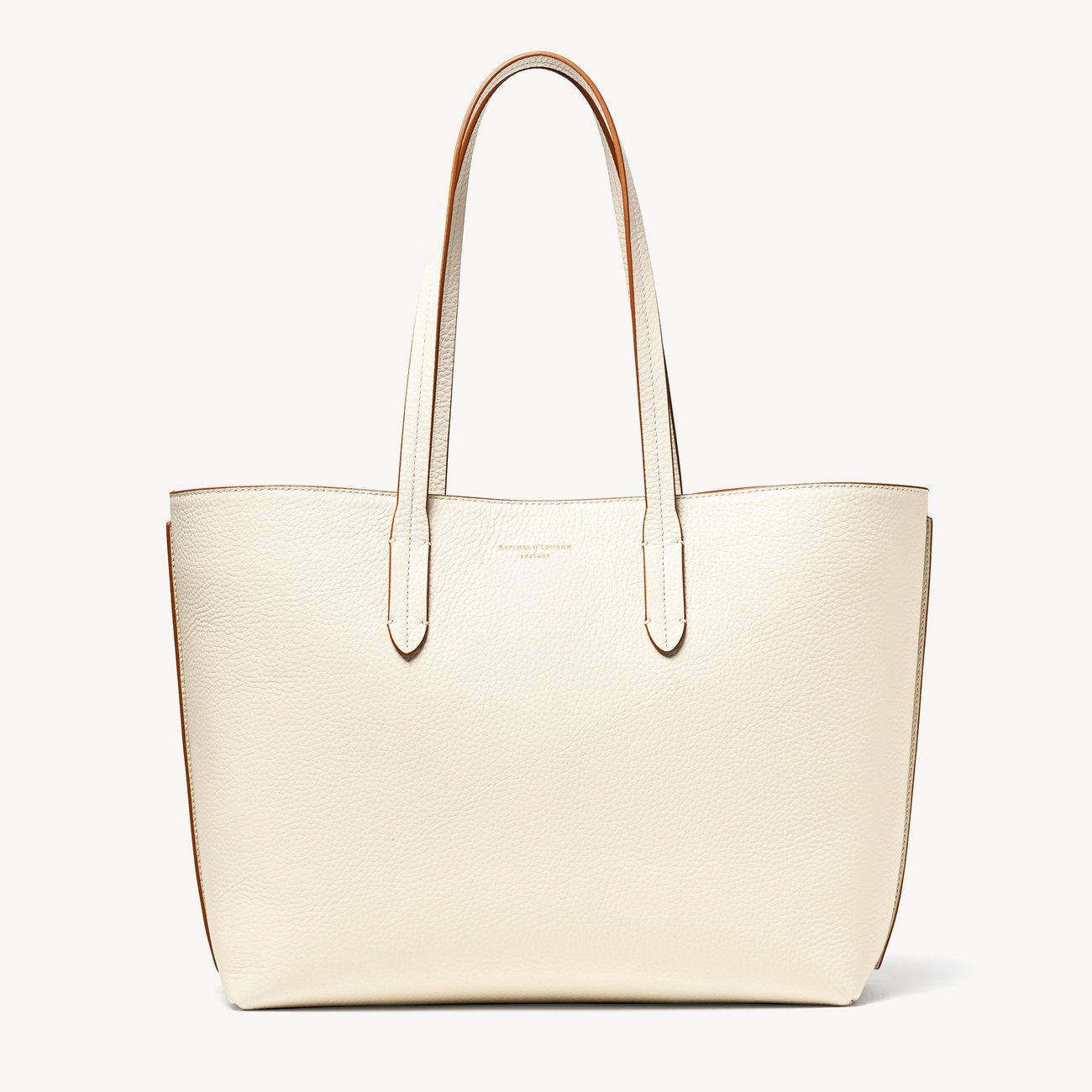Midi London Leather Tote Bag Soft Taupe & Ivory Pebble