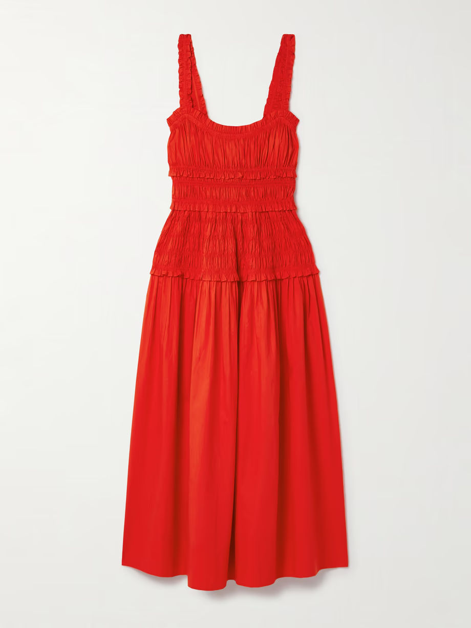 The scoop neckline, the shirred bodice, the colour -everything about this is perfection. Take the tone top to toe with matching shoes, accessories and lips.