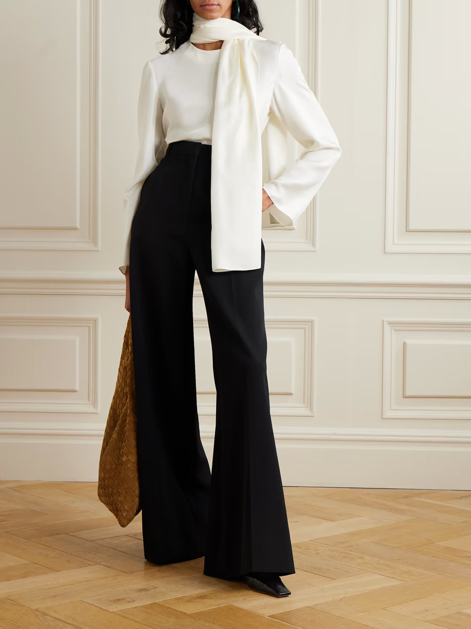 A cream silk blouse like this is eternally elegant, primed for endless repeat wear. Tuck yours into slim pants and layer a blazer on top.