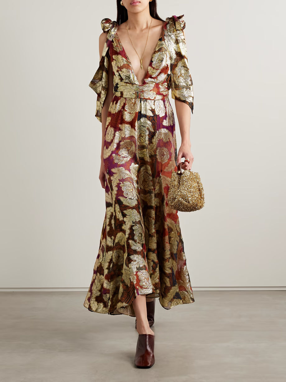 Farm Rio - Printed Metallic Fil Coupé Chiffon Maxi Dress - Red