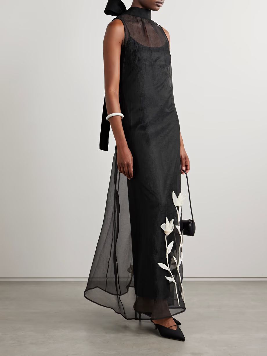 STAUD - Albee Appliquéd Chiffon Turtleneck Maxi Dress - Black