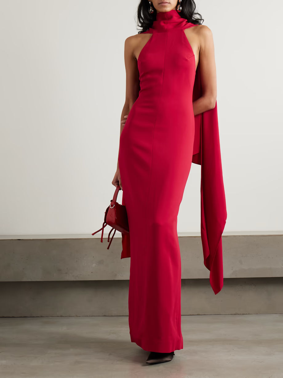 Solace London - Emerson Draped Open-back Crepe Halterneck Gown - Red