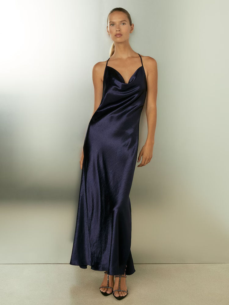 Slip dresses are a timeless choice that you'll return to year after year - and they don't get much better than this. A metallic-like sheen and racer back bring a distinctly modern verve to the indigo Paisley slip dress, crafted from hammered satin for an expensive finish.